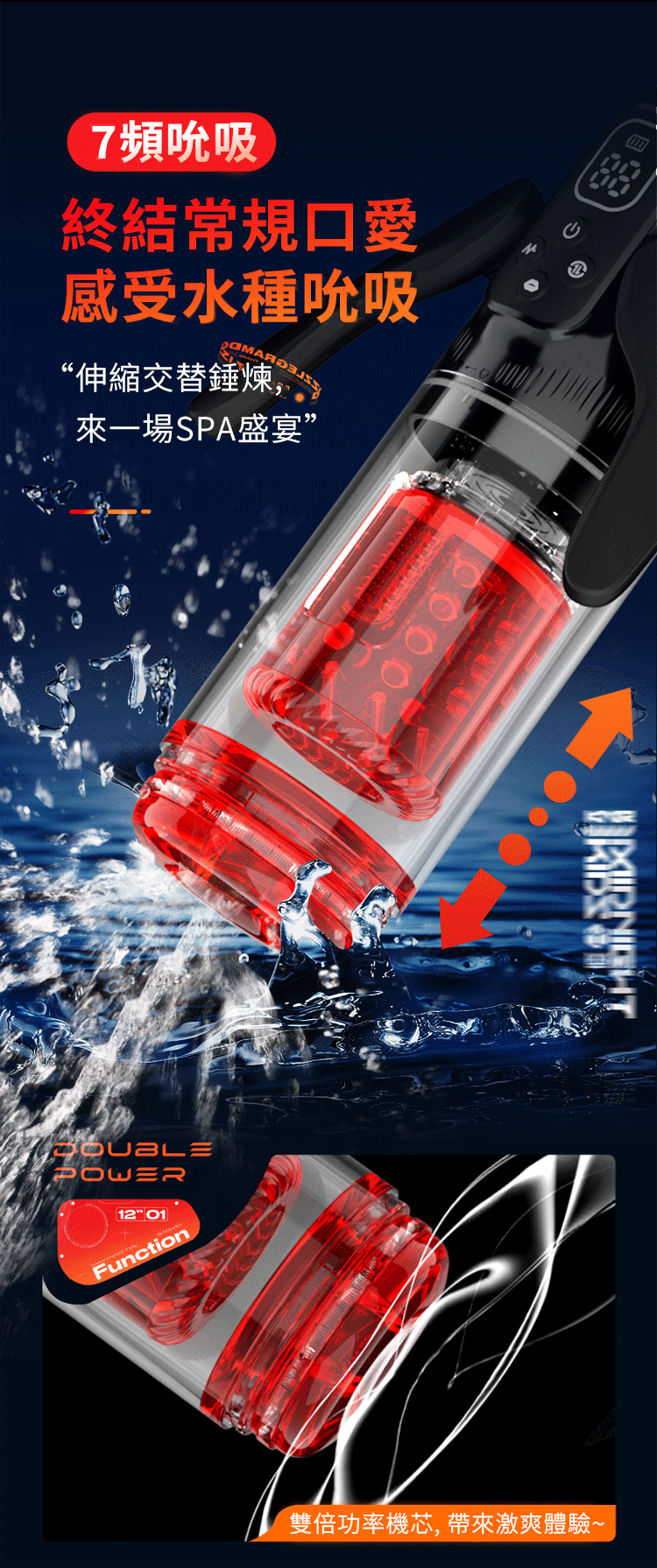 | Toyshcool飛翼.水浴SPA雙臂7變頻 伸縮+旋轉+吸吮飛機杯 IP65全防水