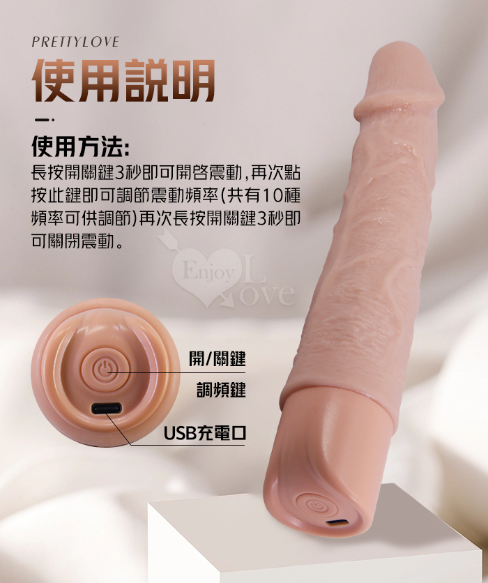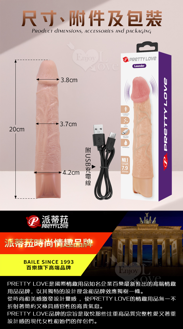 派蒂菈 ‧ Leander 利安德 10段變頻震動 膚色肌仿真筋絡老二造型充電按摩棒﹝NO.1/7.9″ 20cm﹞