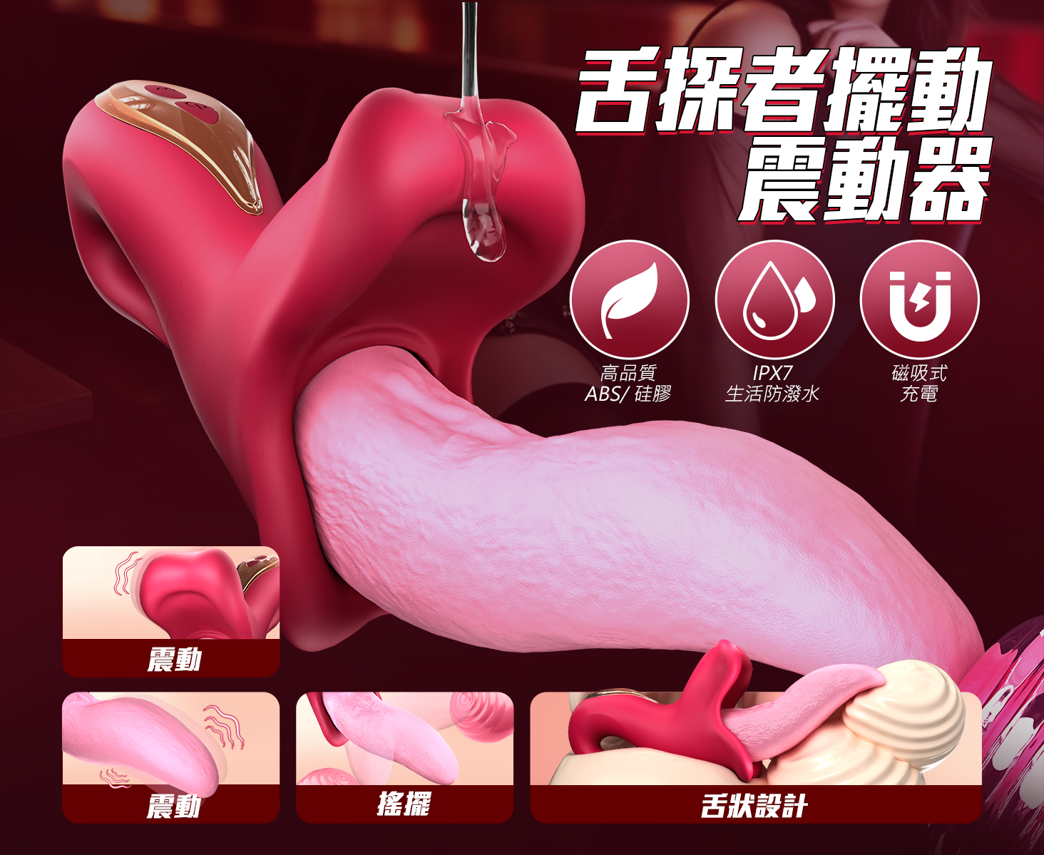 多重刺激按摩器,裹在令人垂涎欲滴的蜜舌,符合人體工學設計,易於使用。