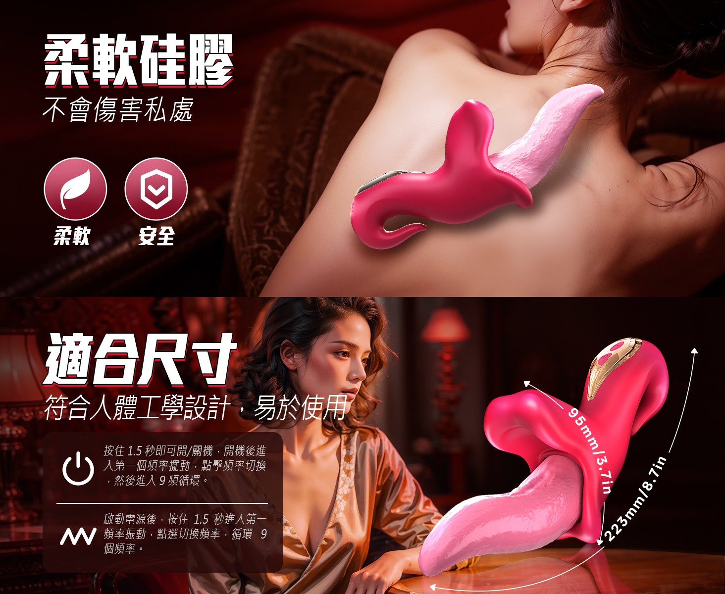 .規格:9段震動、9頻搖擺。