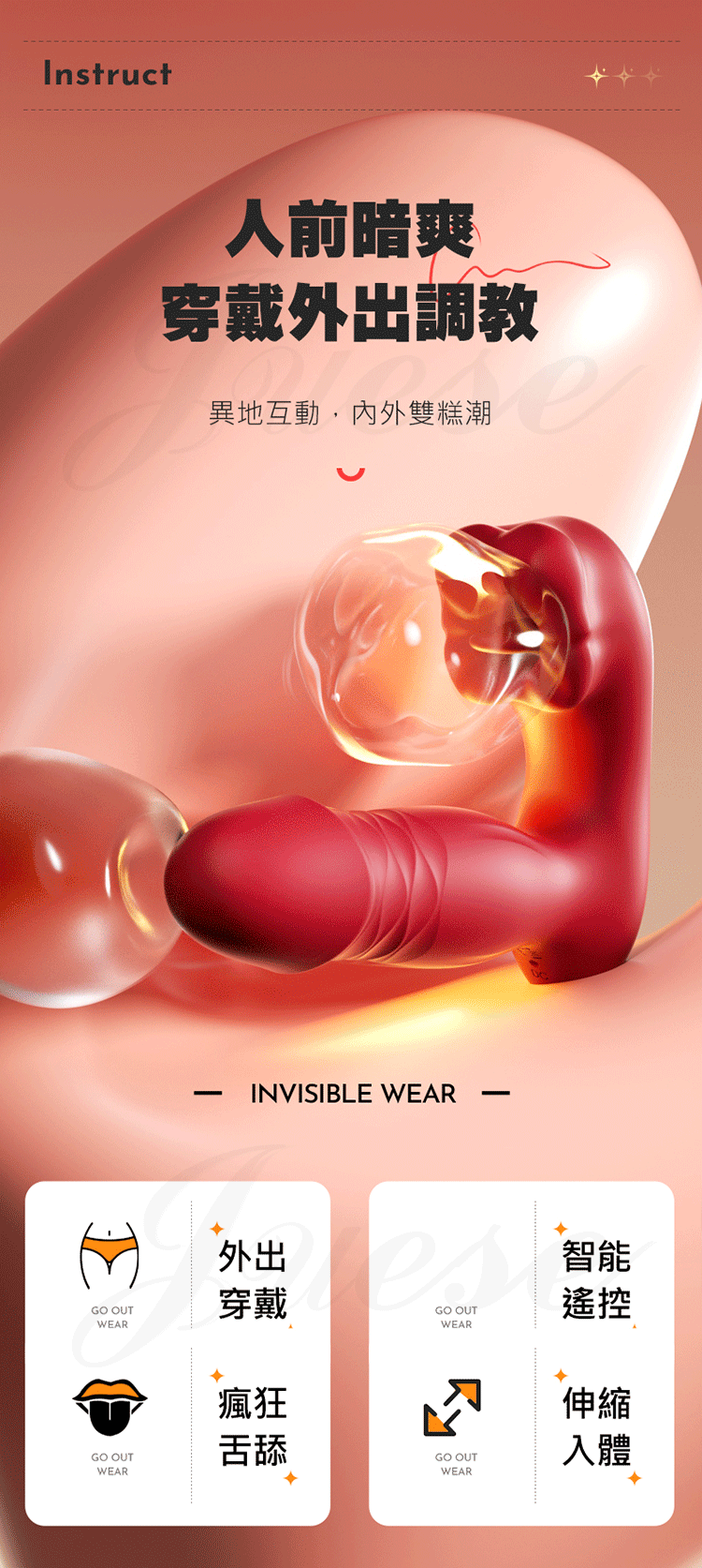 自由嘗試妙趣橫生,遠端智能調教,遠端控制,兼顧身體內外多個敏感點,A,G,C點連續糕點,讓人欲罷不能~