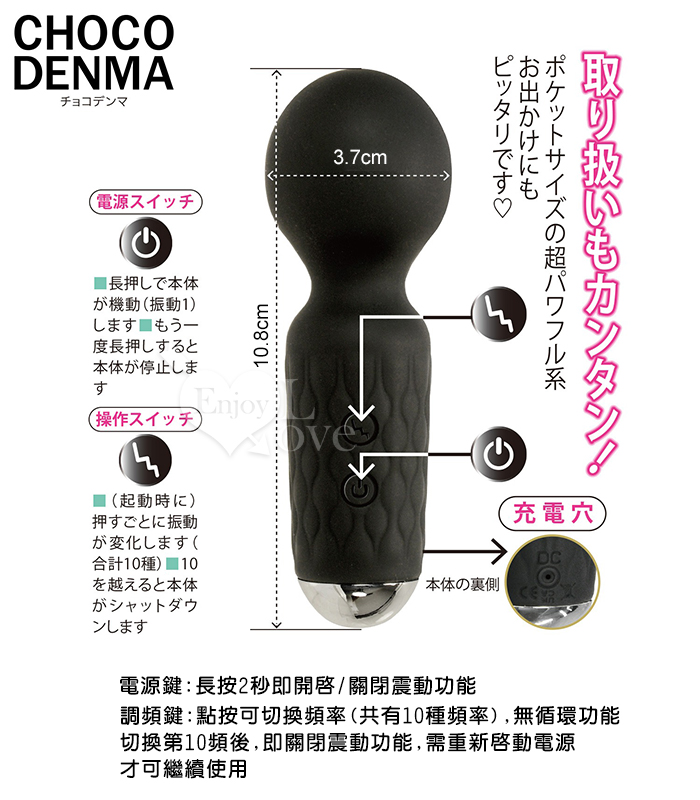 首頁>日本NPG.CHOCO DENMA 炸裂AV棒 3段震速x7頻震動 迷你按摩棒-黑