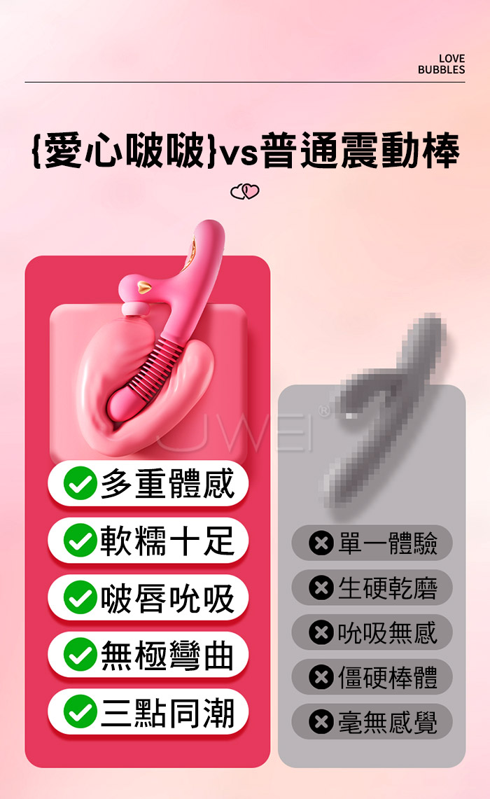 愛心啵啵.7頻伸縮頂震+5頻深吻真吸 環片剮蹭真人體溫按摩棒