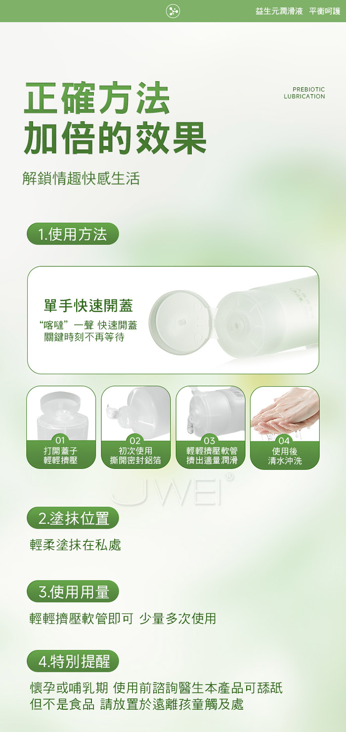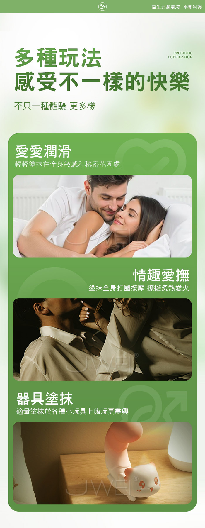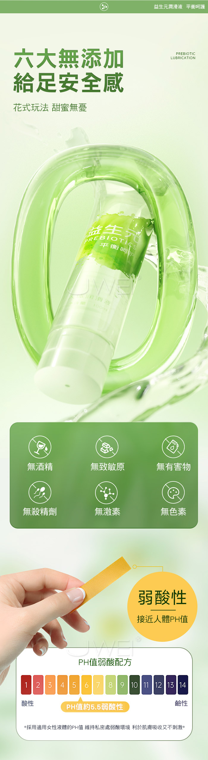 益生元,平衡呵護,守護私處菌叢平衡,暢爽水潤縱情絲滑 添加低聚果糖B-葡聚醣,形成親水膜 鎖住水分 緩解乾燥 澎湃潤澤彷彿自然流動的愛液,喚醒每一寸肌膚的渴望 ●容量:100ml。 ●規格:溫潤爽滑可舔舐 含有益生元 呵護肌膚。 ●性質:水溶性配方,溫和水潤且輕盈。