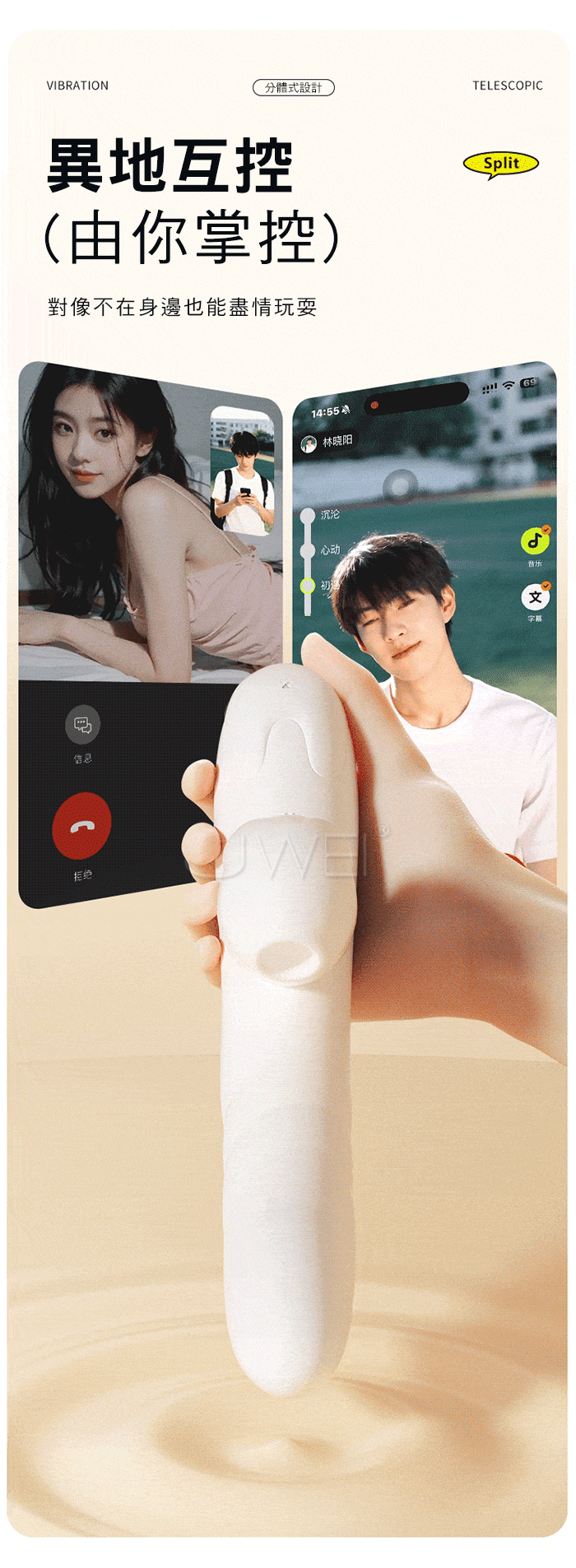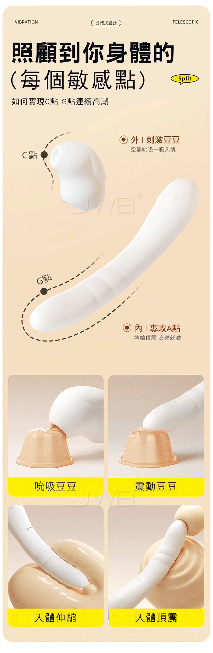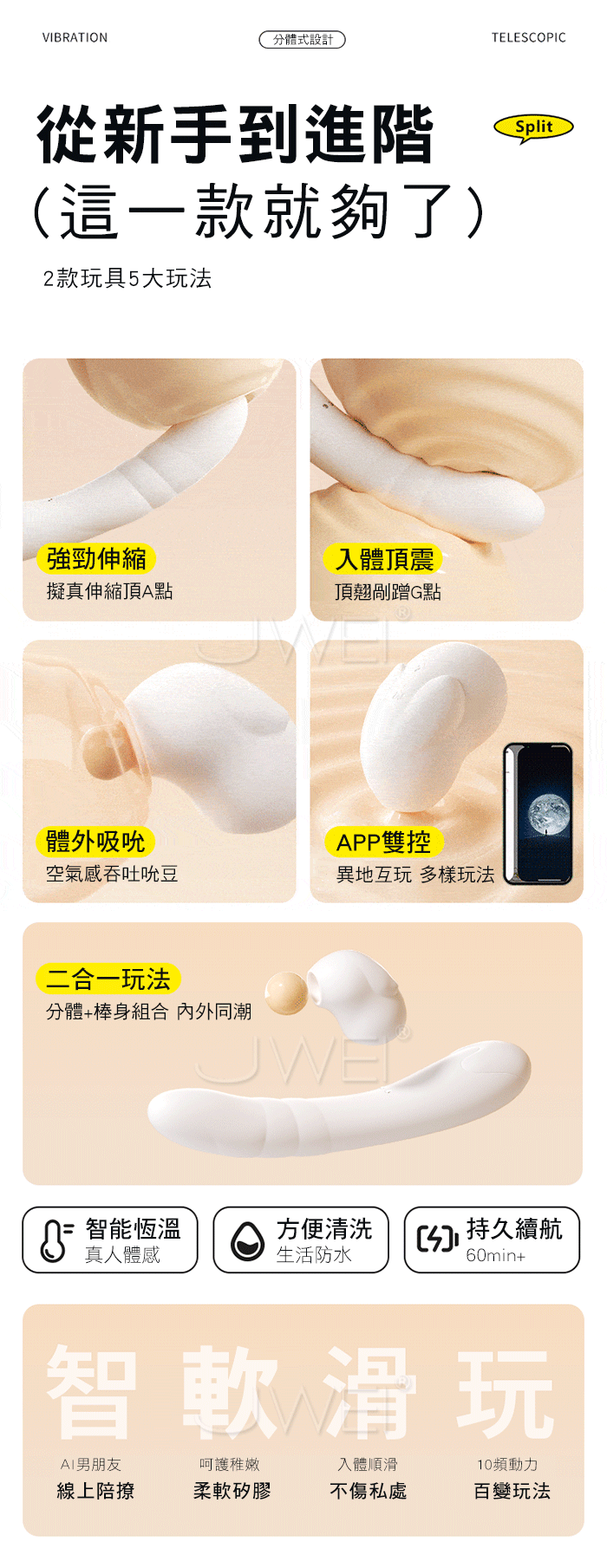 智能分體式,超伸縮頂震,照顧到你身體的每個敏感點
