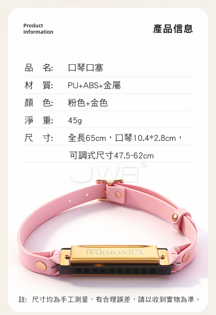 新穎玩法,解鎖驚喜,十孔吹奏輕鬆發出清脆聲響 儀式開啟,為親密添韻律,曖昧升温羞作噤聲,戴上即添嬌羞感 入口剛好久含舒適,口琴厚度精心調校不多不少,初含便覺舒適貼合 產品規格 ■尺寸:大小詳如圖片標示 ■材質:PU+金屬+ABS ■特色:增進情趣 ■SM用品屬於特殊情趣用品,需在雙方清醒自願的情況下使用,該物品僅作為情趣用品使用,使用時應注意安全!!