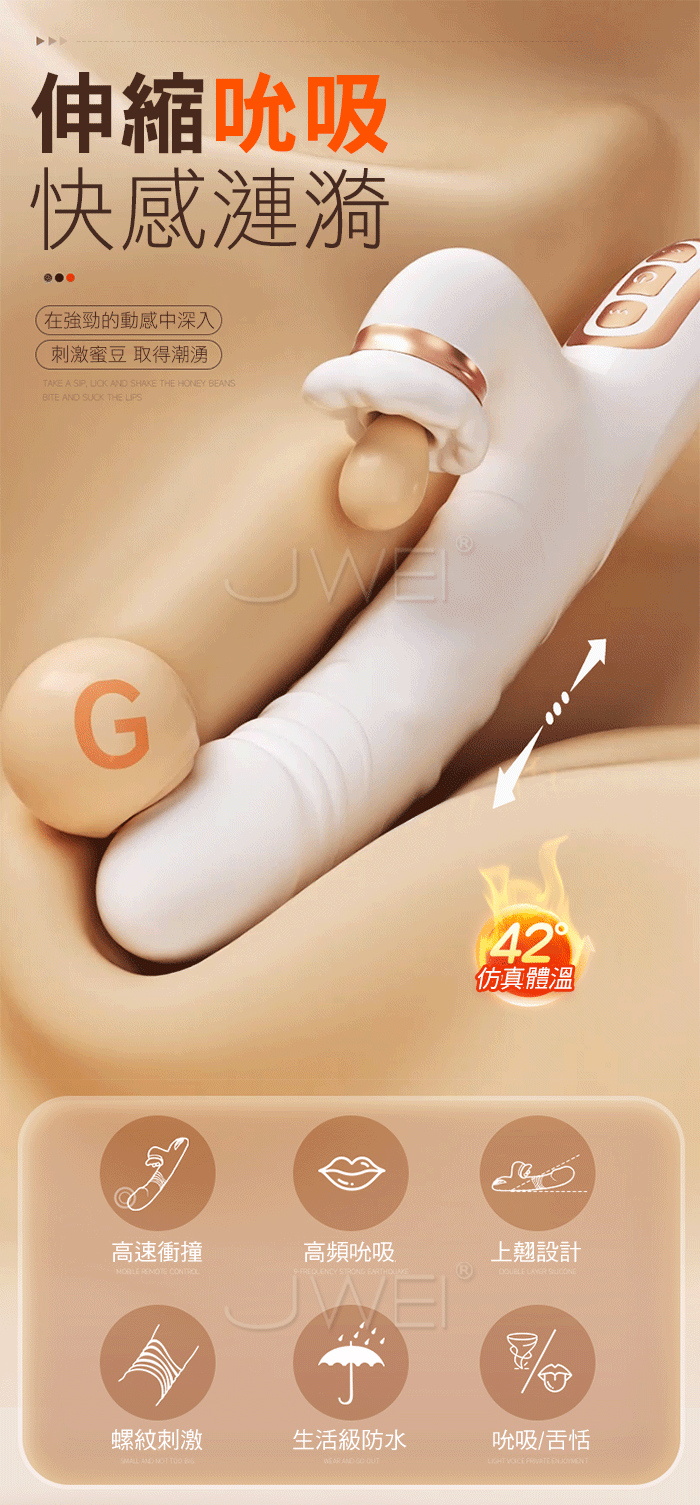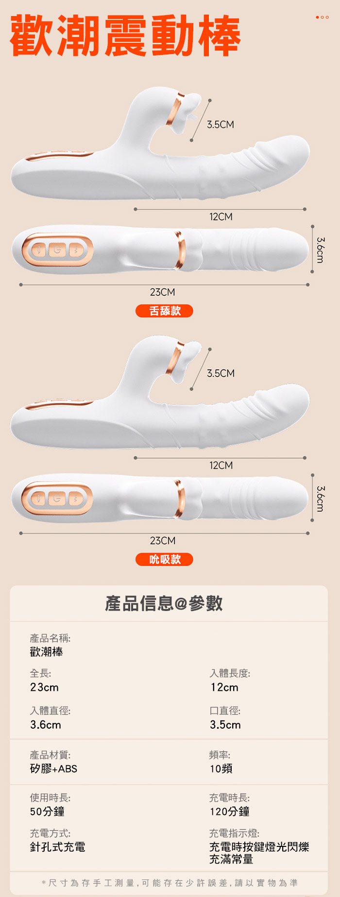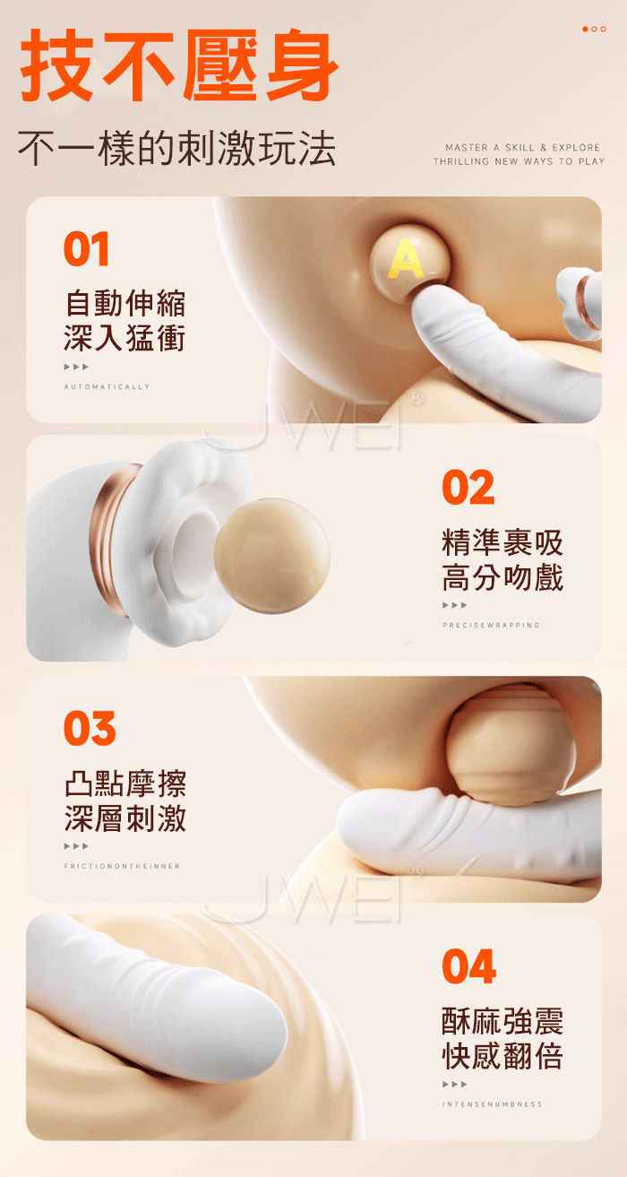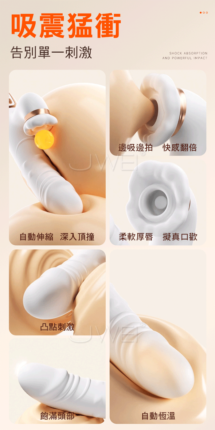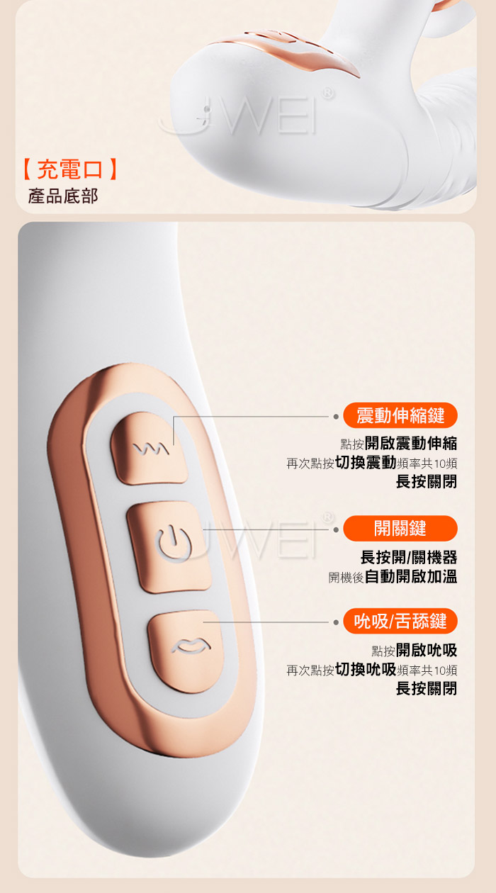 伸縮舌舔快感漣漪,在強勁的動感中深入,刺激蜜豆 取得潮湧 深入花心快速衝擊A點不卡機,每一次頂撞都在為達到高峰積蓄能量 纏綿舔愛精準包裹C點,擬真口愛舔拭陰蒂,比真人更刺激 ■尺寸:大小詳如圖片標示 ■材質:矽膠+ABS ■功能:10頻震動、10種伸縮、10頻舌舔、自動加溫