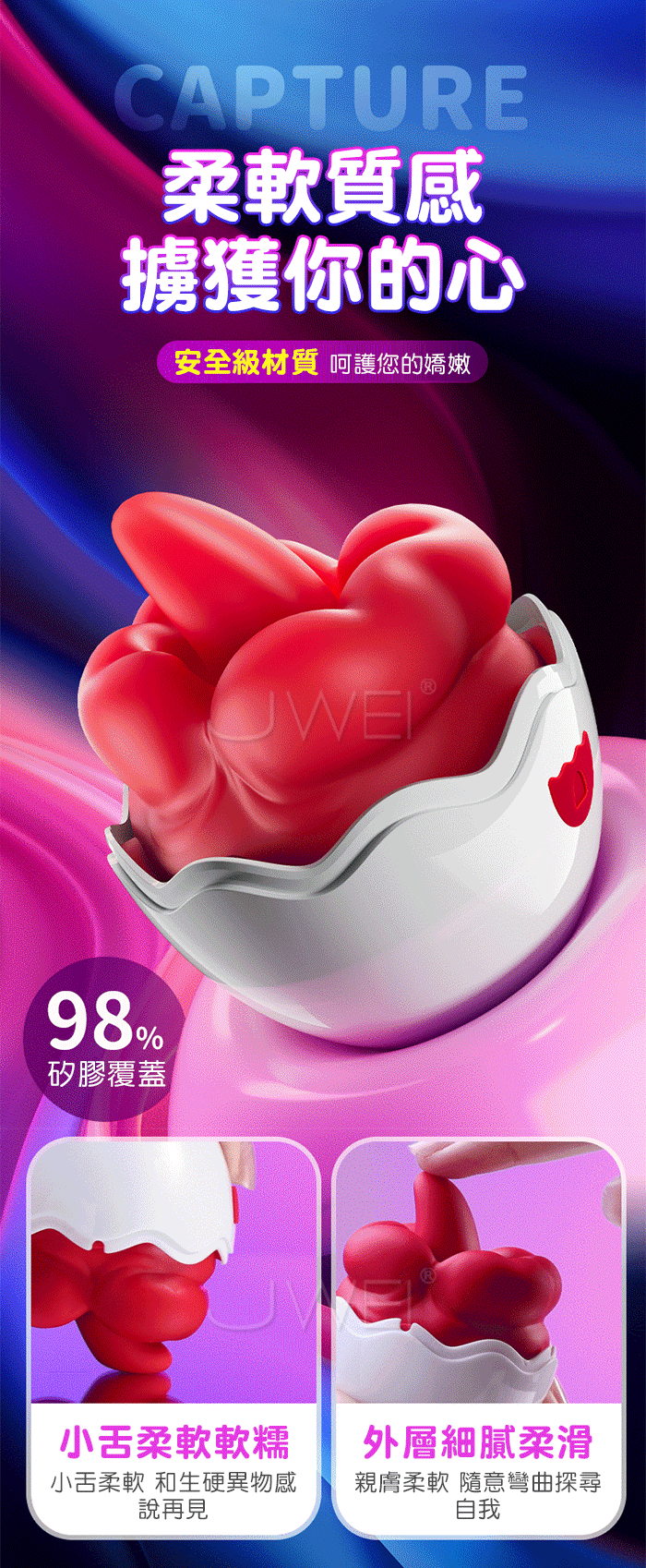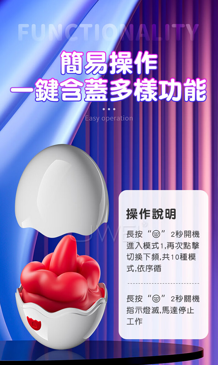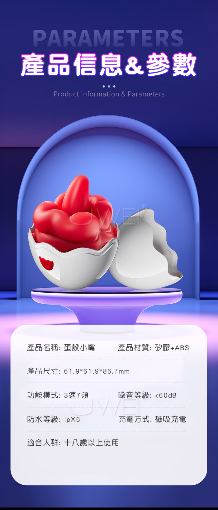 小嘴輕啄歡愉破殼而出,由内到外 縱享高潮 軟舌的雙重纏綿,5D巧舌反覆舔砥蜜豆女性更易獲得快感 智能驅動,點燃內心的狂熱慾望,剛柔並進酥麻席捲而來,調情助燃神器 ■尺寸:大小詳如圖片標示 ■材質:矽膠+ABS ■功能:10頻舌舔