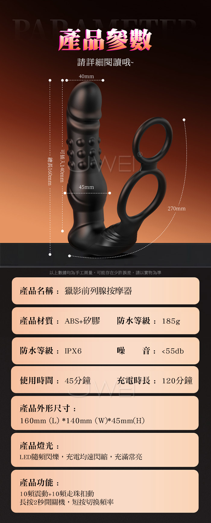 ■功能:10頻轉珠扣動強震、APP智控