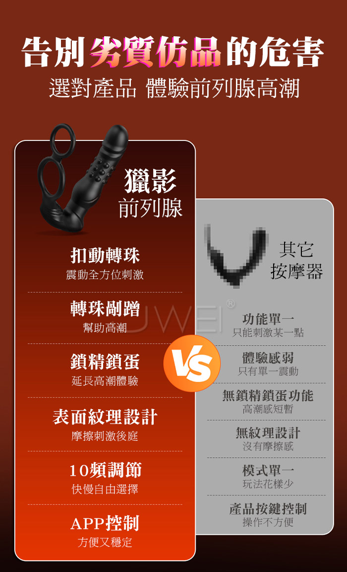 | 獵影.10頻扣動強震+轉珠剮蹭刺激 APP智控前列腺高潮按摩器