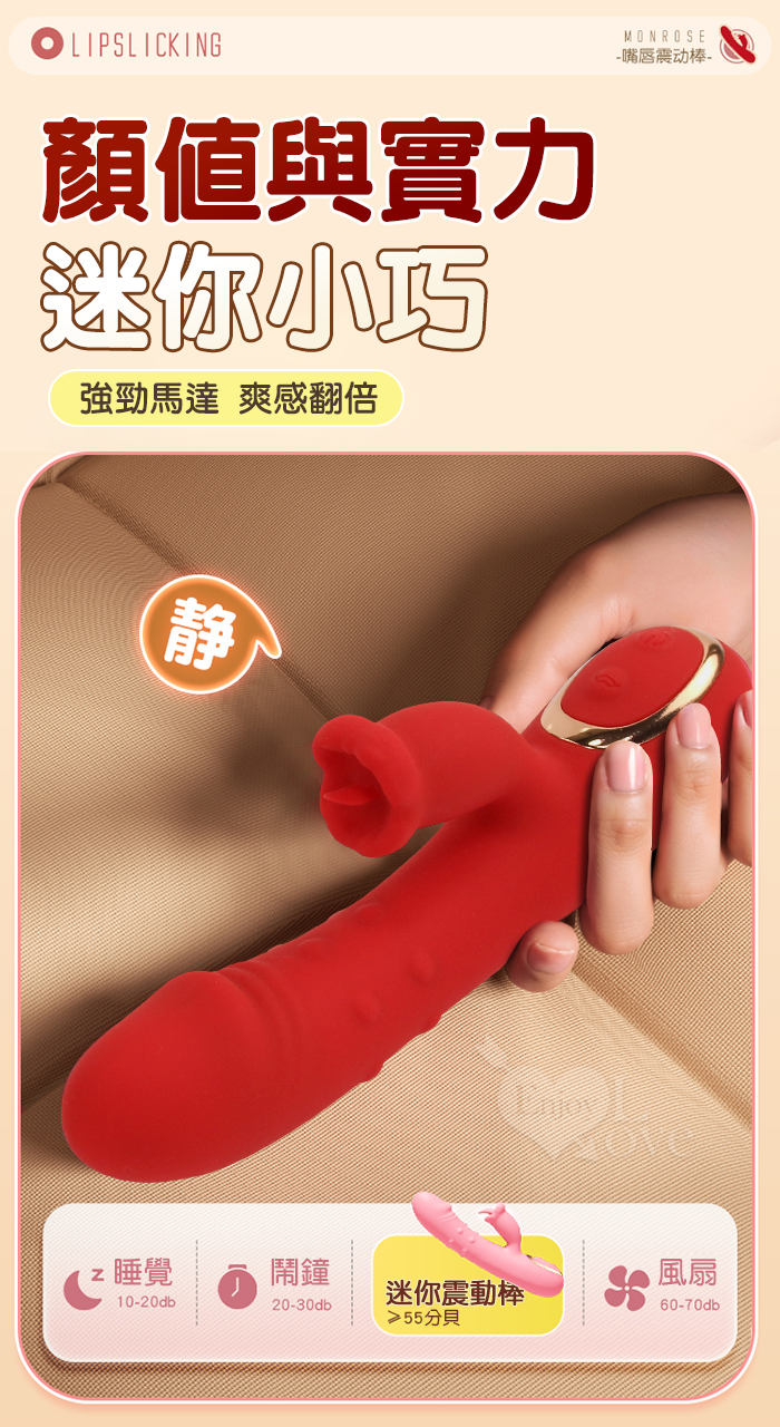 ROSELEX 迷你糕潮神器 雙10頻雙激震舌擊點 CG內外同享加溫按摩器 - 紅